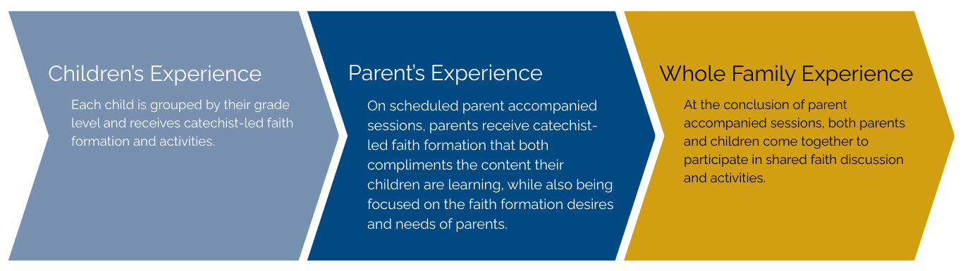 Family Faith Formation at St. Gregory the Great combines faith formation, parental support, and enrichment opportunities to support the whole family’s growth in their Catholic faith.